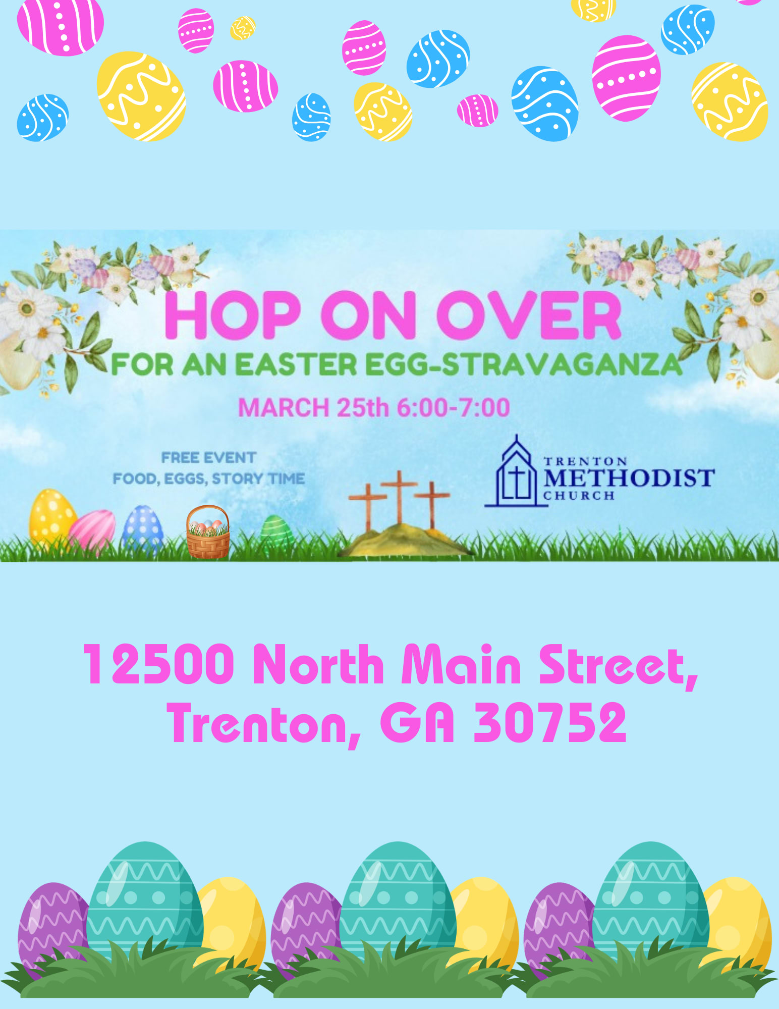 Trenton Methodist Church invites families to a fun Easter Egg-Stravaganza filled with excitement and celebration! Bring the kids and enjoy an evening of food, egg hunting, and story time as we celebrate the Easter season together.